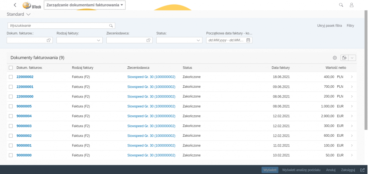 Proces zarządzania dokumentami rozliczeniowymi to jeden z bardziej wymagających modeli workflow w przedsiębiorstwie. SAP daje nam możliwość wykorzystania wielu aplikacji transakcyjnych podnosząc w wielu obszarach efektywność wykonywanej pracy. Aplikacja do zarządzania dokumentami rozliczeniowymi na platformie SAP Fiori daje możliwość zarządzania fakturami, anulowanymi fakturami, notami kredytowymi i innymi dokumentami rozliczeniowymi. Obejmuje wyświetlanie, edytowanie księgowania. Dzięki tego typu narzędziom możliwe jest m.in. sprawdzenie, dlaczego doszło do podziału dokumentu rozliczeniowego czy wygenerowania podglądu wydruku dokumentów rozliczeniowych w formie PDF.